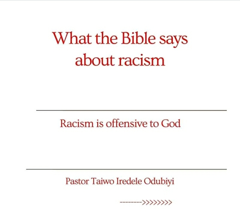 Racism is offensive to God and the following are some of the Scriptures that reveal the mind of God on Racism and Segregation.