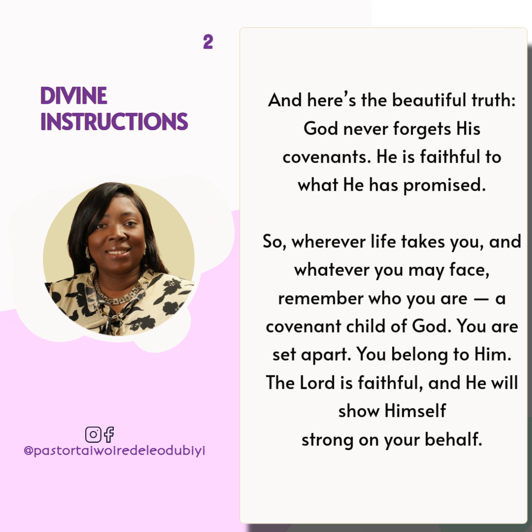 #CovenantChild #DivineInstructions #FaithOverFear #GodsPromise #WalkingWithGod #BlessedWeek #PastorTaiwoIredeleOdubiyi #ChristianLiving