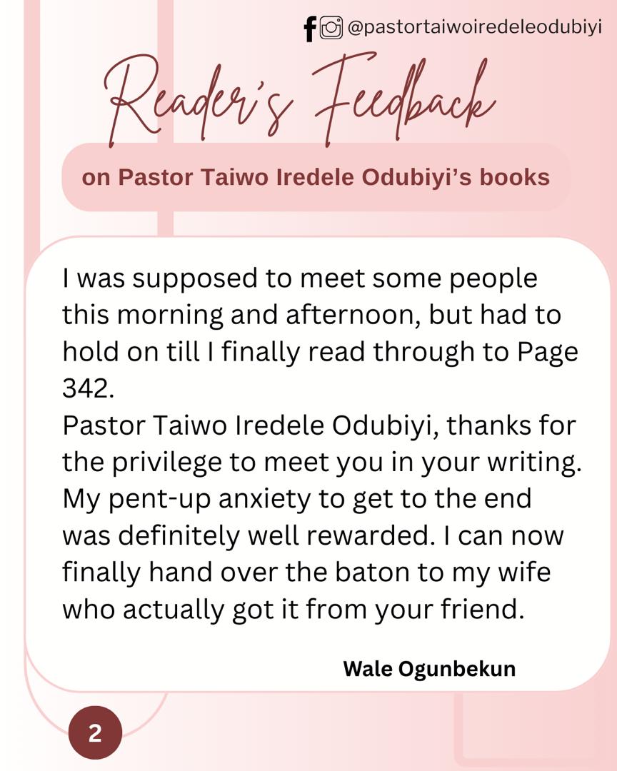 Have you read any of Pastor Taiwo Iredele Odubiyi’s novels? We’d love to hear how the story blessed you. Please drop your reviews, comments, and reflections—your voice may encourage someone else to read and be transformed.