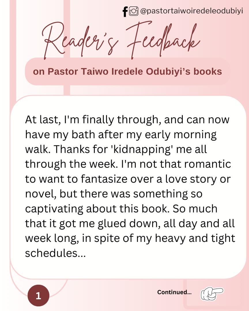 We deeply appreciate Wale Ogunbekun for taking the time to share such thoughtful and encouraging feedback on one of Pastor Taiwo Iredele Odubiyi’s Christian romance novels.