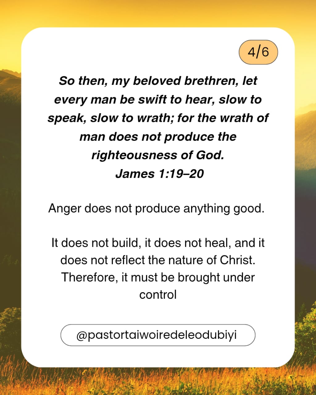 Pastor Taiwo Iredele Odubiyi shares timely, Spirit-led divine instructions to help you understand, manage, and overcome anger in a way that honours God and brings peace to your heart.